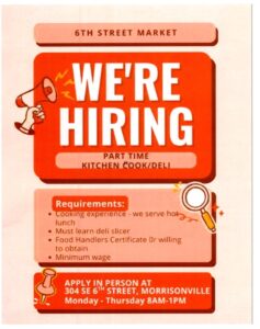6th Street Market – Kitchen Cook/Deli NEW