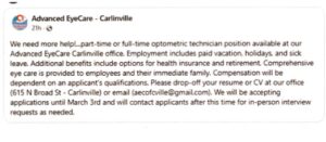Advanced EyeCare – Carlinville – Full and Part Time Technician Positions NEW