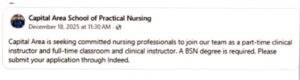 Capital Area School of Practical Nursing – Clinical Instructor