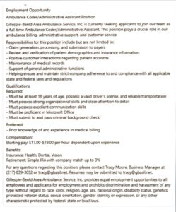 Gillespie-Benld Area Ambulance Service – hiring Ambulance Corder/Administrative Assistant Position NEW
