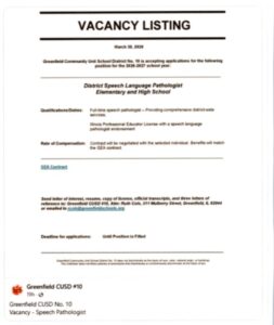 Greenfield CUSD #10 – District Speech Language Pathologist NEW