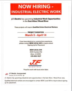 J.F. Electrical – Now Hiring – Industrial Electric Work
