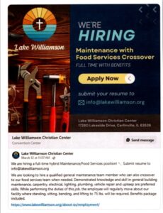 Lake Williamson – Maintenance with Food Service Crossover NEW