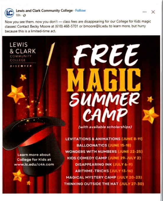 Lewis and Clark Community College – Free Magic Summer Camp NEW