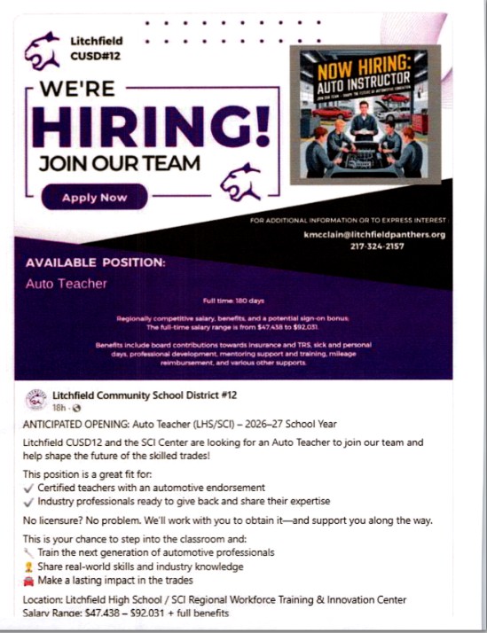 Litchfield CUSD #12 – Auto Teacher 2026-27 NEW