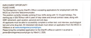 Montgomery County Sheriff’s Office – Full Time Telecommunicator NEW