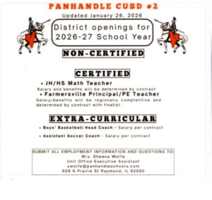 Panhandle CUSD #2 – Certified Positions Open NEW