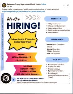 Sangamon County Department of Public Health – Animal Control & Adoption Center Clerk Typist 1 NEW