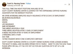 Scott Co. Nursing Center – Hiring – CNA NEW